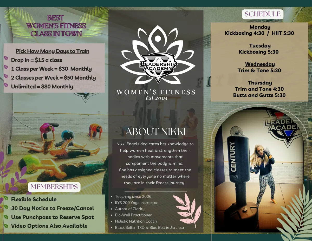 Empowering women of all fitness levels with Nikki Engels. The program emphasizes building confidence, discipline, and physical strength in a supportive environment.